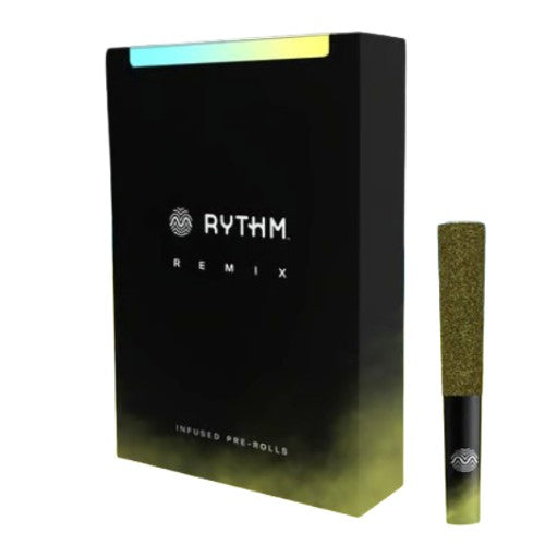 Remix pre-rolls feature RYTHM premium indoor flower double infused with THCa diamonds and kief for maximum potency and fine-tuned with 100% natural terpenes.